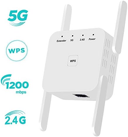 ZHENREN WiFi Extender Signal Booster for Home, Covers Up to 2400 Sq.ft, 1200Mbps WiFi Repeater 2.4 & 5GHz Dual Band with WPS and Ethernet Port, Wall Plug WiFi Range Extender 4 Antenna