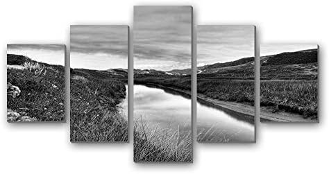 川 -自然 -#2443 - 白黒 5枚 パネル アートパネル 現代壁の絵 壁掛け部屋飾り背景絵画 キャンバス写真 壁アートしゃしん 木枠付きの完成品 装飾 軽くて取り付けやすい